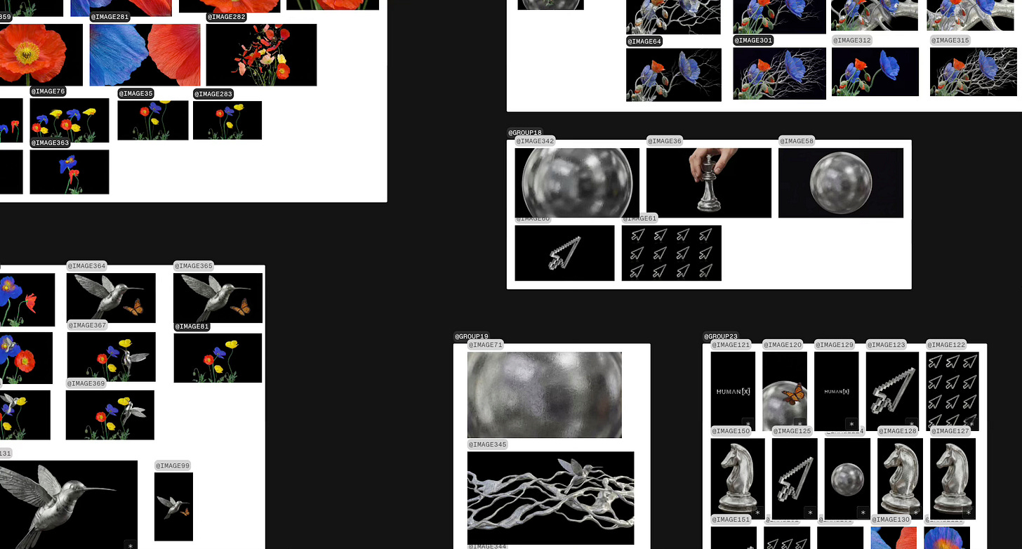 We spent time with the assets before touching any tool. Laid them all out on the MITO canvas. Looked at them not as graphics but as potential carriers of meaning. And a structure appeared.