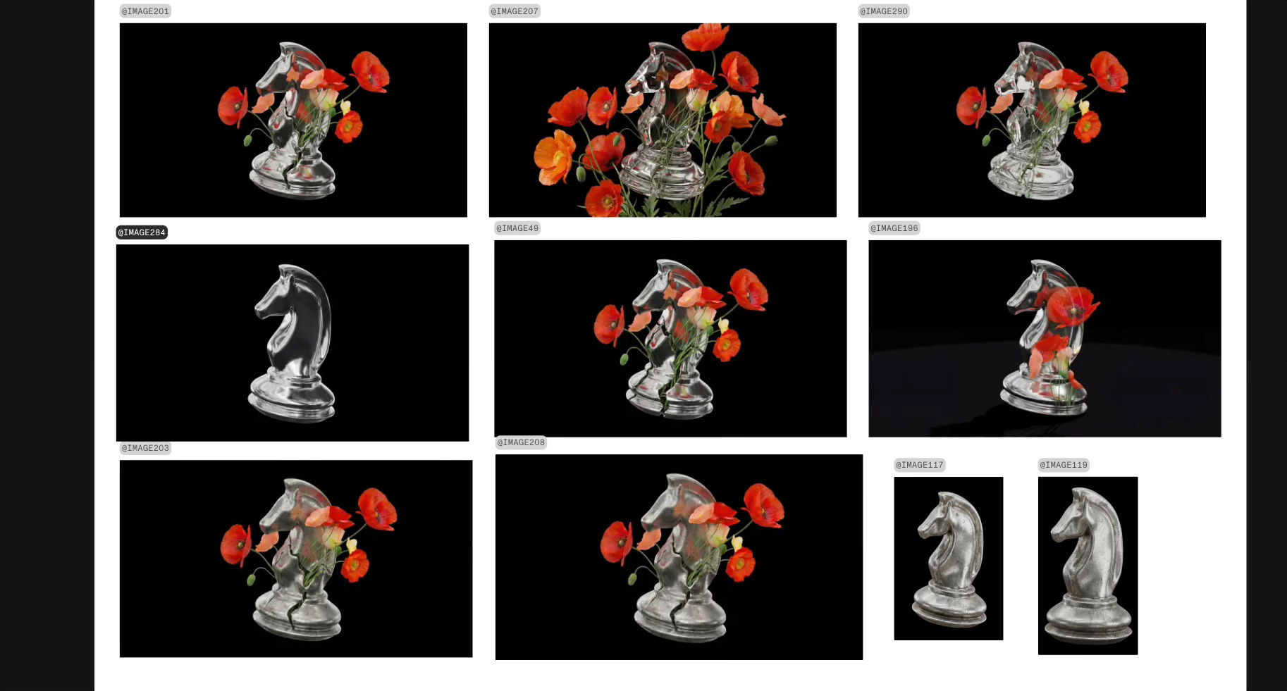 The black background wasn’t an aesthetic whim. It turns every frame into a vitrine. Objects become specimens. Your eye goes to surface, to material, to the tension between things. It also solved a practical problem: visual coherence across four very different symbolic families.