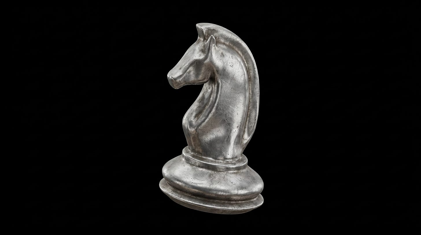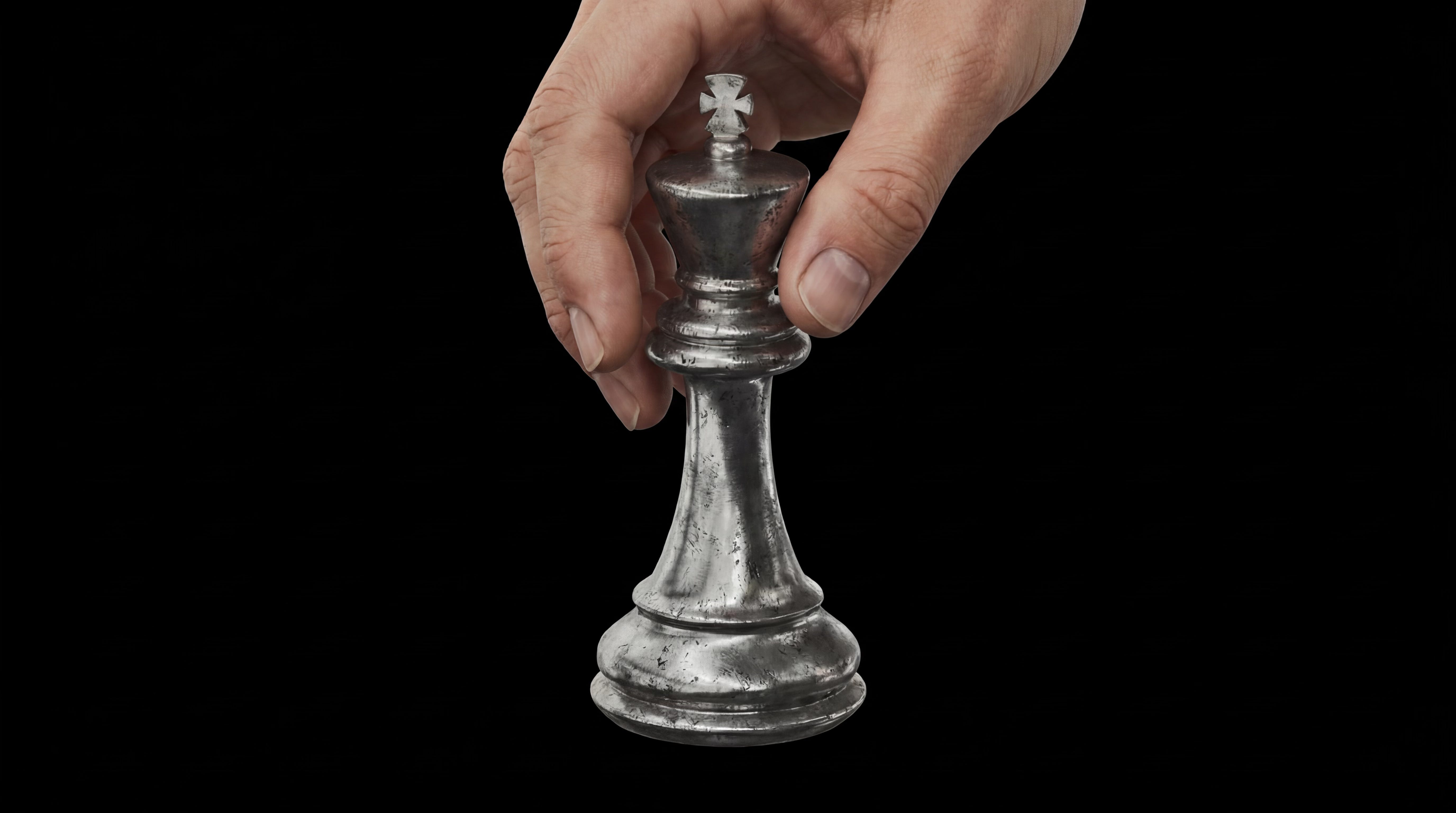 The chess piece is strategy. Not random chess—specifically the knight (non-linear thinking, the unexpected move) and the king (authority, the power centre). Intelligence operating inside rules.
