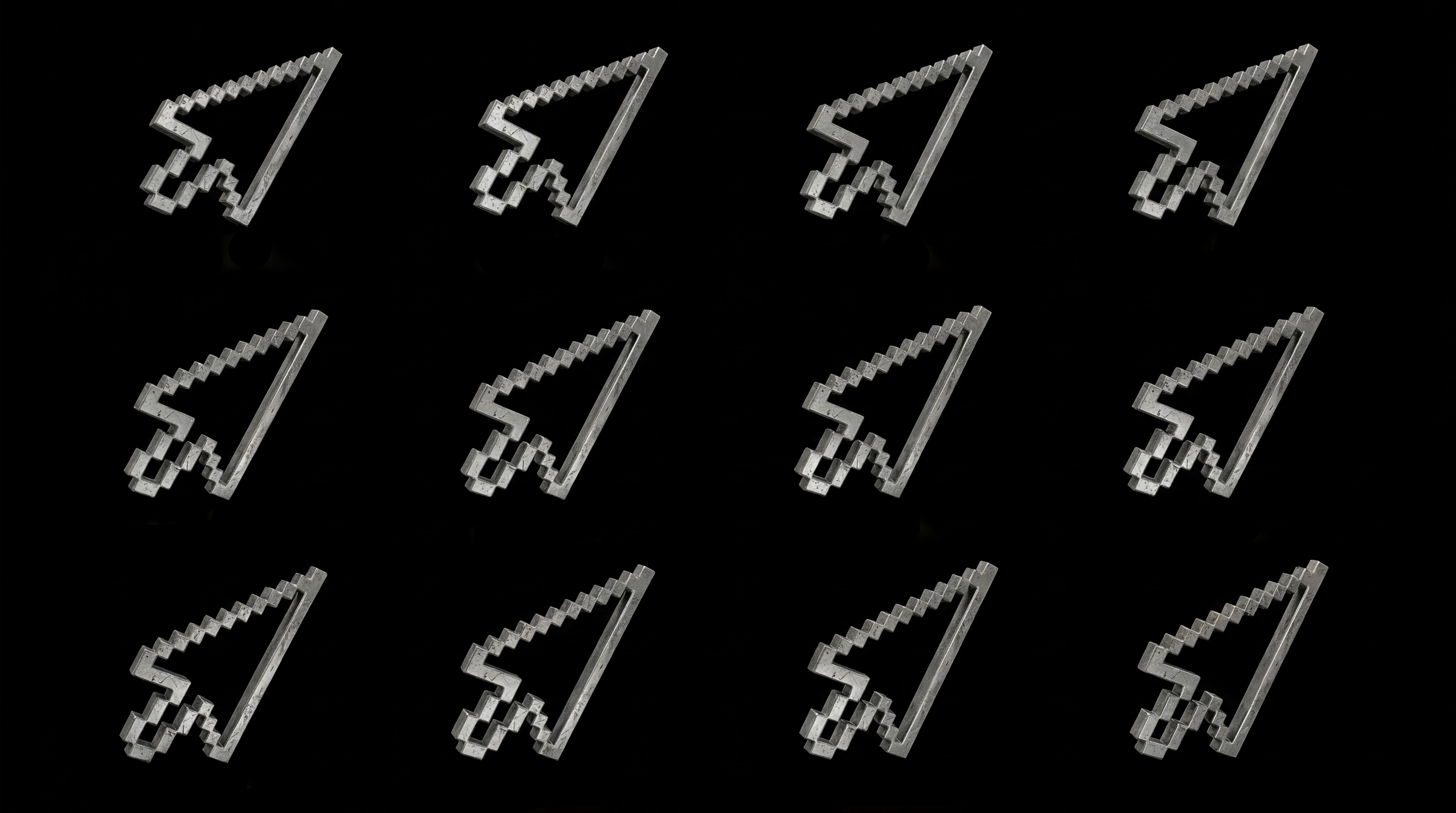 The cursor is a choice. The most basic human gesture inside a digital system. A click. The moment before everything.