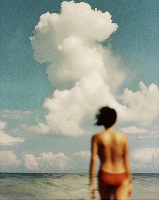 Only at the end does the horizon breathe. The sea levels out. Two women, barefoot, balance on a giant yellow bunny drifting across open water; pop icon as life raft, irony as lullaby. It’s a last-frame coda and a thesis at once: the world is absurd and exquisite, and beauty’s job is to keep us afloat.